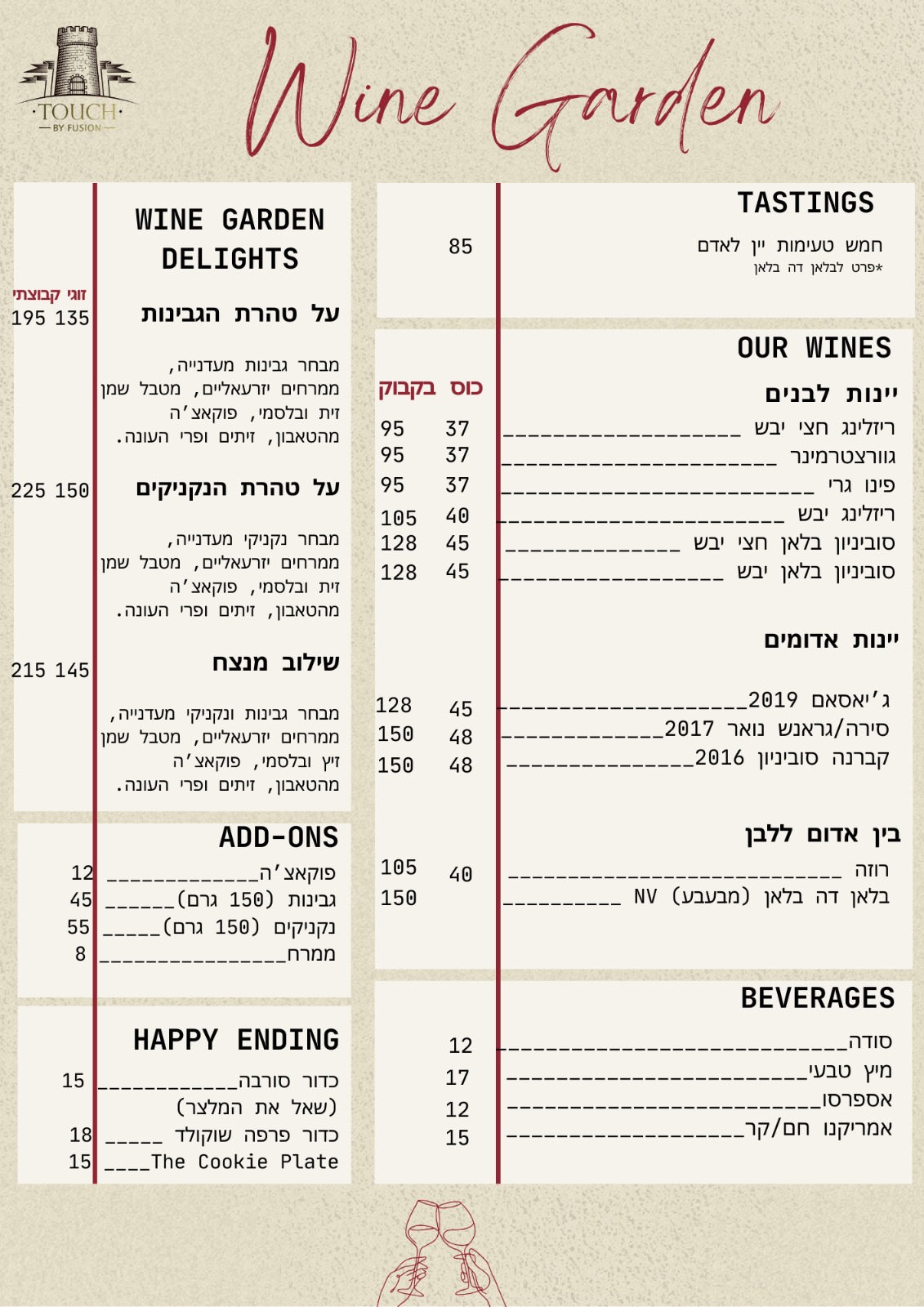 מבקש לשתף את חווייתנו ב- Wine Garden … התחילה כבר בדרך לתמרת הכפרית ומוקפת שדות ירוקים שמעניקים תחושת חו״ל, ממשיכים ביישוב בתמרת עצמו, מסודר ונקי עד שמגיעים לבית משפחת יצחקי רווי צמחייה ודרך השביל מגיעים לרחבת Wine Garden המקסימה, מרחב פתוח מוקף חורשה אינטימית המשרה את האווירה המתאימה לאירוח. התכבדנו בתפריט מגוון, עשיר טעמים בדיוק לחך ולעיקר: יין מתוך מגוון היינות של Touch by Fusion, יינות משובחים ומתוכננים בדיוק מקצועי של דורון יצחקי. האווירה מקסימה ורגועה, שירות אדיב, חם וידידותי אשר תמך את החוויה שלנו מרגע הראשון עד סיומו, היה קשה להיפרד מהחוויה ובהחלט משאירה טעם של עוד … תהנו גם אתם 🥂🍷