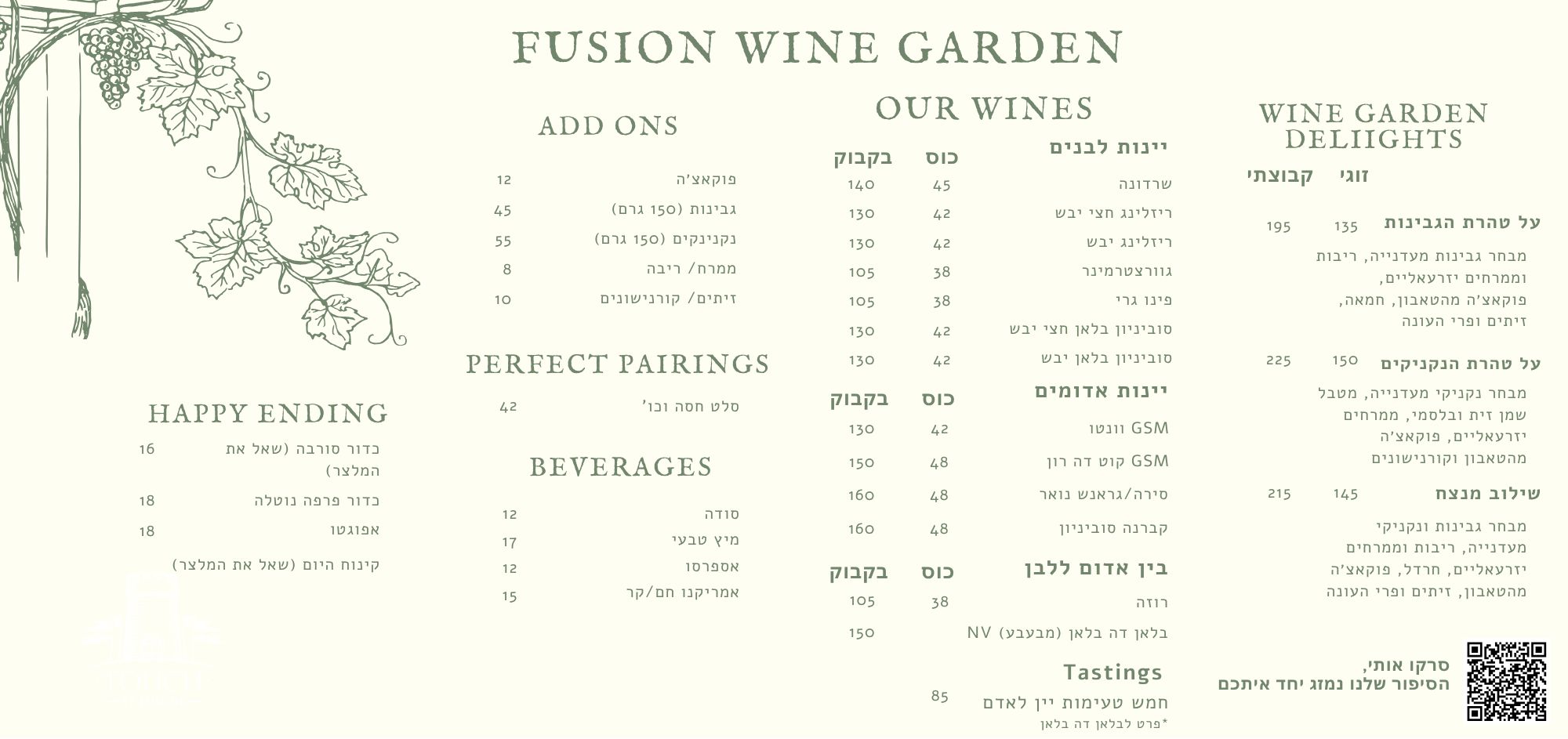 התארחנו ב wine garden מספר פעמים ובכל פעם מחדש נהנינו מהיינות המשובחים , האוכל האיכותי והאווירה הכייפית